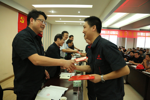 大会由党委副书记、工会主席王建波同志主持。首先,公司党委委员、常务副总经理赵鹏程同志宣读了公司党委表彰通报,一是授予生产一支部、生产三支部“先进基层党组织”称号;二是授予张春华、史金松、陈虎、袁 江、周  玉、任伟伟、刘 新、孙小鸣、徐峰、魏可萍、陈 平、张其辉“优秀共产党员”称号;三是授予叶锦华、姜红“优秀党务工作者”称号。会上,公司党委还组织4名新党员进行了入党宣誓仪式。新党员代表陈华益、入党积极分子代表肖雷刚在会上分别发言。