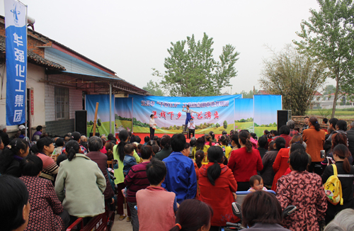 从4月中旬开始,我公司联合当阳市歌舞剧团开展“送文化、送科技、送肥料”文艺演出暨华强复合肥回馈促销活动拉开大幕,我公司将在3个月的时间内,在全市范围内进行20余场巡回演出,将精彩的文艺节目和高品质华强复合肥送到农民朋友的家门口。