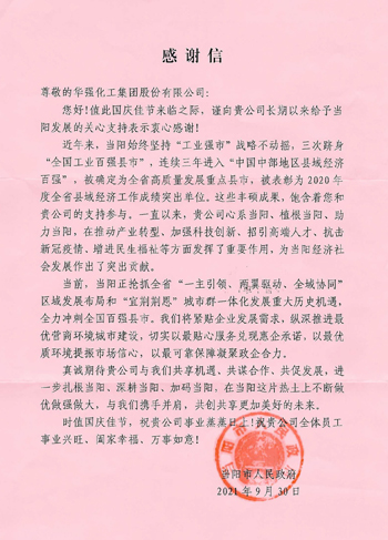 感谢信中说,近年来,当阳始终坚持“工业强市”战略不动摇,三次跻身“全国工业百强县市”,连续三年进入“中国中部地区县域经济百强”,被确定为全省高质量发展重点县市,被表彰为2020年度全省县域经济工作成绩突出单位。这些丰硕成果,饱含着伟德国际victor1946的支持参与。