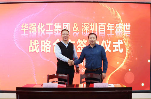在与会人员的共同见证下,我公司总经理徐化林与深圳市百年盛世营销管理咨询有限公司总裁赵一沣签订了战略合作协议。
