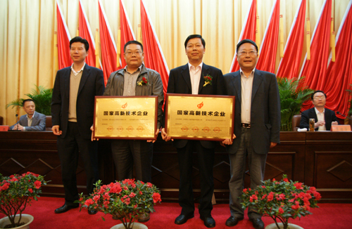 4月11日下午,市委、市政府在市委会议室隆重召开全市科学技术奖励大会,市委书记郑廷贵、市委副书记、市长石显银为我公司颁发了国家高新技术企业铜牌,我公司副总经理杨世立代表公司领取铜牌。会议还表彰了2011年度为当阳科学技术进步作出突出贡献的单位和个人。市委副书记、市长石显银作了重要讲话。