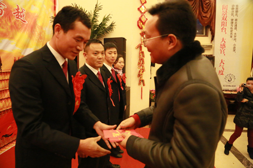 会上,集团公司董事长、总经理余华强同志和集团公司副总经理、农贸公司总经理周栋梁同志对农贸公司磷复肥分公司2012年复合肥销量达到5000吨和4000吨以上的业务员分别进行颁奖。同时,家属代表骆筱琴女士也上台发言。她对丈夫常年出差在外表示充分的理解,表示会一如既往地支持亲人的工作,永远是亲人坚强的后卫!永远不拖亲人后退!她的发言,引起众多家属共鸣,博得全场掌声。