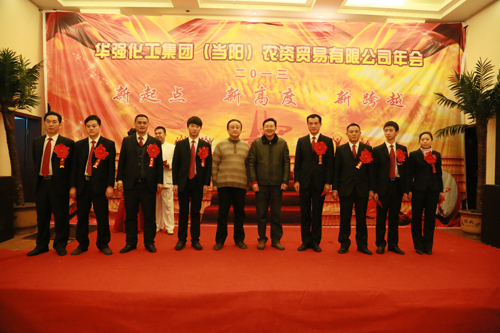 集团公司副总经理、农资贸易有限公司总经理周栋梁同志和集团公司董事长、总经理余华强同志分别致辞和讲话。对农贸公司磷复肥分公司员工提前完成全年15万吨复合肥销售任务表示热烈的祝贺!并向全体员工及家属致以诚挚的新年问候!